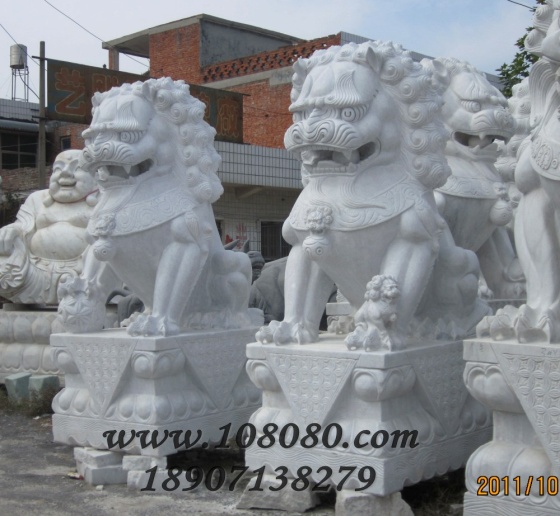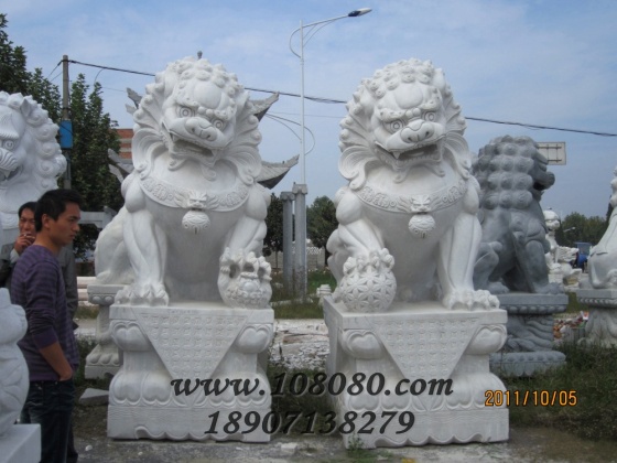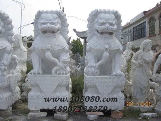 漢白玉石獅子在擺放的時候,...