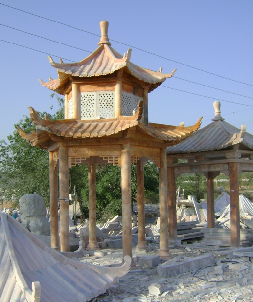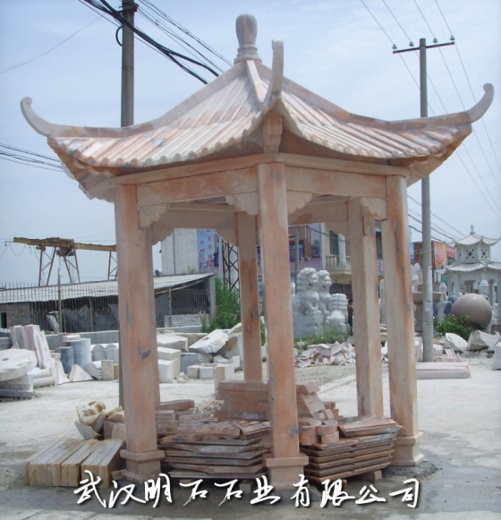 晚霞紅石雕涼亭
